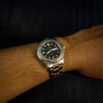Powered by a precise Swiss quartz movement, it features a day-date display neatly tucked at 3 o’clock, adding both function and charm. With its classic diver-inspired silhouette and understated luxury, this CYMA is a rare find for collectors who appreciate the fusion of heritage elegance and sport-driven aesthetics.