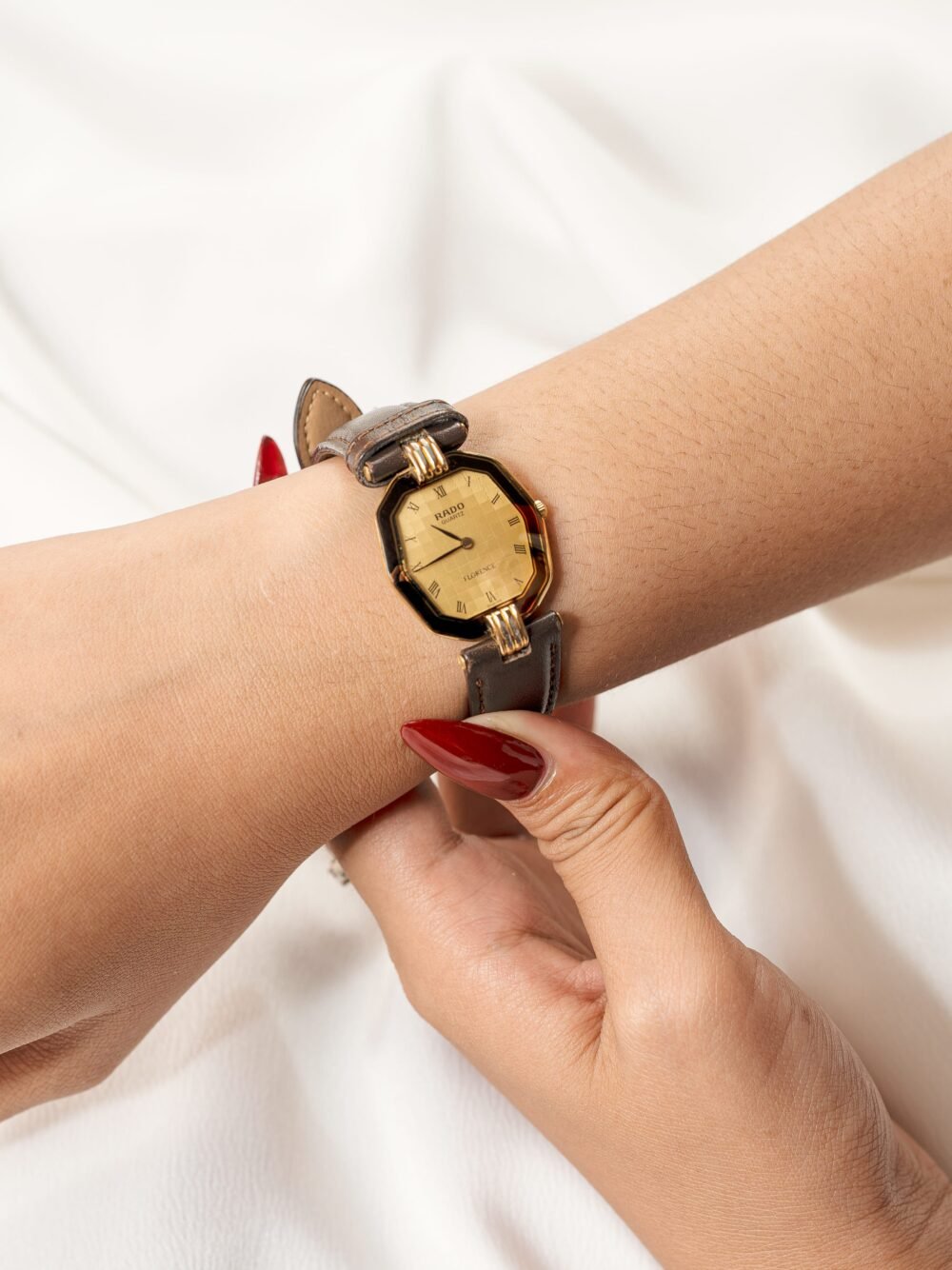 The Rado Florence Octagon Gold Dial captures the timeless elegance that has long defined Rado’s heritage in Swiss watchmaking. Its unique octagonal case, framed in gold-tone accents, creates a striking silhouette that sets it apart from conventional designs. The champagne gold dial, adorned with slim Roman numeral hour markers, adds a refined classical charm, while the polished case and bezel lend a sense of luxury to every glance at the wrist.